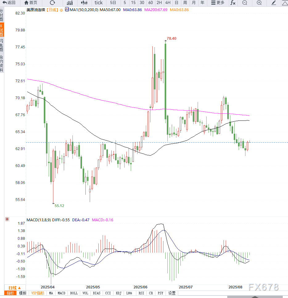 市场正关注当日在阿拉斯加举行的特朗普与俄罗斯总统普京会晤,俄乌停火问题是会议核心议题之一。持续的冲突被认为可能限制俄罗斯石油供应,从而支撑油价。   市场分析人士指出,俄乌局势的不确定性使得原油市场对供应中断的担忧依然高企,这在短期内对油价形成了支撑。   另一方面,日本最新经济数据显示二季度表现超出市场预期。日本政府周五公布的数据显示,二季度GDP年化增长1.0%,显著高于市场预期的0.4%;环比增长0.3%,也高于预期的0.1%。   作为全球主要原油进口国之一,日本经济的稳健扩张有望提升其原油需求量。   一位能源经济学家表示,日本的经济复苏可能在下半年进一步提振亚洲市场的石油消费需求。   不过,油价涨幅仍受制于美国利率前景。近期美国通胀数据高于预期,加之就业数据疲软,引发市场担忧美联储可能维持高利率更长时间。高利率通常会抑制经济活动,从而减少能源消费。   能源市场顾问认为,美国高利率预期可能在未来数月对油价上涨形成反向压力。   从美原油日线图来看,价格已突破短期整理区间上沿并站稳在20日均线上方,短线多头动能增强。MACD指标快线向上穿越慢线形成金叉,显示上涨趋势延续的可能性较大;   RSI指标接近60水平,仍有进一步上行空间。若价格能有效突破64.50美元阻力位,下一目标有望挑战65.30美元;下方支撑位关注63.20美元,一旦跌破可能回测62.50美元区域。